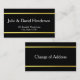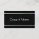 A black background is on this address card. A faux (not foil) gold line is above and below the text. Personalise your cards with your name and address. The other side says 'Change of Address'.