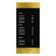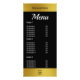 Front: At the top, this elegant rack card has black display text for the restaurant's name on a faux gold stripe. Below that, white text reads 'Menu'. Under Menu, there's white text for your menu items and prices. The faux gold stripe at the bottom has a display image for your logo. Back: There's additional white text for menu items and prices. At the bottom, the faux gold stripe has black display text for your restaurant address and phone number. All text can be edited or deleted. Gold is an artistic rendering (not foil).
