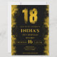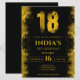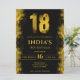 This Black And Gold 18th Birthday Party invitation, reflecting the significance of turning 18, features a brushstroke faux gold foil number 18, luxurious colours, bold and stylish golden text, and a great surprise for a milestone birthday celebration.