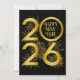 Celebrate 2026 with bold golden typography and radiant fireworks on a sleek black background. Blank reverse side allows for personalized use.