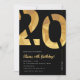 Elegant black and gold 20th Birthday Party Invitation