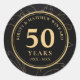 Elegant Black and Gold Botanical 50th Anniversary Classic Round Sticker