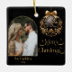 Elegant Black and Gold Christmas Photo Ceramic Ornament