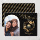 Elegant Black and Gold Christmas Photo Holiday Card. Celebrate the season with elegance! This Christmas greeting card features a luxurious gold and black ornament, adding a touch of sophistication. Your favourite photo is beautifully framed in a graceful arch shape, while your family name is prominently displayed, making this card a personalised keepsake for the holidays.