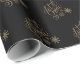 Wrap your christmas gifts up with this gorgeous christmas wrapping paper, featuring glitter gold script font which reads 'Let it snow' and some gold snowflakes on a classic black background.