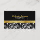 Elegant black and gold stylish business cards for any type of business. Featuring a black and white damask pattern with metallic gold accents.