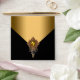 Elegant black and gold invitation and announcement special occasion envelopes with beautiful gold pearl jewel on the front. Add your return address to the back flap. You can also change the background colour and remove the inside gold layer to add the colour of your choice. This is a printed design with no real jewels, pearls, etc.