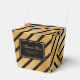 Modern custom black and gold foil wedding favor box featuring black and gold stripes. Easily personalize these wedding favor boxes with your wedding details. Our elegant wedding favor boxes are perfect for your elegant black and gold wedding party. These personalized thank you favor boxes can be customized to other occasions, such as bridal showers.