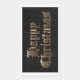 Old English Lettering Happy Christmas Dinner Party, Christmas Party Napkins, with Faux Gold Old English Typography on black background.