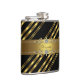 Beautiful black and gold flask. You can add text and change the background colour on this elegant black liquor flask. This custom designed liquor flask makes a great gift and is easily customised.