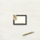 Modern classy design to give note taking a cool fun approach! Designed with black frame and gold pinstripe border around the Post-It notes with a faux gold caladium leaf on left upper corner. Centre of notes are light ivory and personalise with your very own name. Makes a great gift idea for a co-worker or friend on any occasion!
