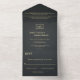 Elegant Black And Gold Monogram Rustic Wedding All In One Invitation