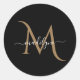 Elegant Black and Gold Monogram Script Name Classic Round Sticker
