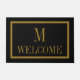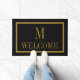 Elegant black and white name monogram door mat. Make your own custom monogrammed indoor / outdoor doormat with custom background colour and text. Add your own welcome message, family name, surname, initial letter or funny quote. Cute gift idea for new home / housewarming, wedding venue, store, shop, company office, business etc. Stylish script typography. Personalizable template. Create your own classy entry mat / rug for front door / entryway or hall. Customisable home decor / decorations for your chic house.