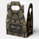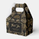 Elegant black and gold patterned wedding favour box featuring black and gold palm leaves. Easily personalise these wedding favour boxes with your event details. Our luxury wedding favour boxes are perfect for your elegant black and gold wedding party and other occasions. These personalised thank you favour boxes can be customised to other occasions, such as bridal showers, birthday parties, baby showers and more.