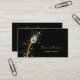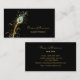 An elegant peacock feather business card with a stylish gold filigree swirls peacock feather and unique blue heart shaped peacock eye against a plain black background. Personalise this modern and elegant all purpose template by adding your business name. Flat image with gold gradient colour, not gold-leaf.