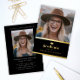 An elegant foil pressed graduation invitation featuring a large photo with graduation cap and minimal editable text on the front. The back has a vertical photo and a place to use to announce the graduate and party details.