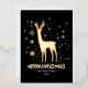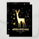 This Modern ElegantBlack and Gold Reindeer Real Foil Merry Christmas non photo design features a reindeer surrounded by an elegant set of snowflakes and stars. The back of the invitation is a festive pattern of the same Christmas illustrations. You can customise the background colour and the text. This design is perfect for a Merry Christmas card. See the whole matching collection!