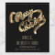 Elegant Faux Gold Foil Script Merry Christmas on Black Background, Wine or sparkling wine Bottle Label, Unique Christmas Gift for family, friend, colleagues and business associates. Add Name, Address and Website.