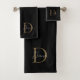 Elegant Black and Gold Script Monogram Bath Towel Set