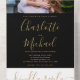 Elegant Black And Gold Script Photo Wedding All In One Invitation