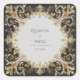 Add a luxurious finishing touch to your wedding decor with this Elegant Black and Gold Scroll Wedding Sticker. This design showcases an intricate golden flourish border in a symmetrical frame over a rich black and ivory background. The ornate baroque-inspired scrollwork creates a classic, upscale aesthetic—perfect for sealing envelopes, favour boxes, or adding refinement to your welcome gifts and table accents.