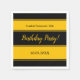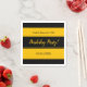 This elegant black and gold Napkin is perfect for a modern Birthday. The simple design features sleek black-and-gold calligraphy on a black-and-gold striped background.