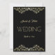 An Elegant Black and Gold Wedding Invitation designed with gold coloured trim and accents. The front text includes: WEDDING, the Bride & Groom's First Names and Wedding Date. The reverse text includes: The Bride and Groom's Full Names, Wedding Date, Time, Location and Reception Note, on a soft linen coloured background, with black border trim. To personalise, simply insert your text into our easy template, replacing the sample text. Be sure to view the entire Elegant Black and Gold Wedding Collection for matching cards and accessories.