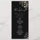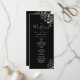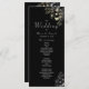 Vintage, elegant, boho, chic black wedding program, with gilded silver and gold floral lace.