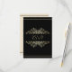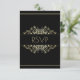 An Elegant Black and Gold coloured Wedding Reply Card designed with elegant gold coloured trim and text: RSVP on the front. The inside text includes your Reply By Date and space for guests to complete their names. To personalise, simply insert your details into our easy template, replacing the sample text.