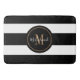 Elegant Black And Gold White Stripes Monogram Bath Mat
