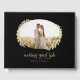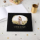 Complement your black and gold wedding with this minimalist, yet elegant wedding photo guest book featuring a gold wreath photo frame on a plain black background.