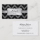 Elegant black and dark grey Chevron zig-zag pattern and a silver metallic ribbon. Professional Wedding Planner business cards.