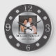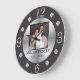 Elegant Black And Silver Family Name Custom Photo Large Clock