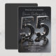 Set the tone for an unforgettable evening with this sophisticated 55th birthday dinvitation. This luxury aesthetic features oversized, 3D-rendered "55" typography designed with a stunning black faux glitter texture and encased in a sleek silver chrome border. The numbers pop against a dramatic matte black background, creating a moody, high-end vibe perfect for evening soirees, black-tie events, or elegant dinner parties. The guest of honor’s name is written in a chic, modern white script, adding a personal touch of elegance. This design perfectly balances modern glitz with timeless sophistication, ensuring your milestone celebration starts with a statement.
