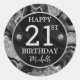Elegant Black and Silver Glitter Agate Birthday Classic Round Sticker