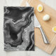 Elegant Black and Silver Glitter Agate Pattern Tea Towel