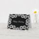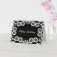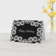 happy birthday card with black and white damask floral design.