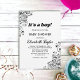 This elegant black and white baby shower invitation is perfect for a modern floral baby shower. The simple design features black floral decorations with elegant black typography on a white background.