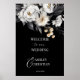 Black and white boho peony flowers dry leaves pampas grass elegant wedding welcome sign editable template poster instant digital download personalised wedding entrance decor