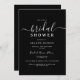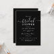 This elegant black-and-white bridal shower invitation combines a timeless design with modern sophistication. Featuring refined calligraphy and a minimalist layout, this invitation is ideal for honouring a special bride-to-be with a chic, alternative wedding theme. The clean black background contrasts beautifully with the white script, offering a classy, goth-inspired touch, while the simple, yet elegant border adds a layer of sophistication and formality.
