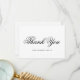 Elegant and classic flat thank you card featuring a simple design with "thank you" in a formal black calligraphy along with your business name in a serif font, over a white background. The backside has your personal message, signature, title and business name. A traditional and classy design that is great for any professional.