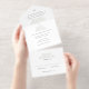 Elegant foil all in one wedding invitation featuring a simple and classic design with your monogram and your event details in a traditional serif font.