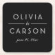 Elegant Black and White Custom Wedding Monogram Square Paper Coaster