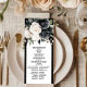 Stunning Floral Design: Featuring exquisite black floral illustrations against a crisp white background, this program exudes elegance and sophistication, making it a striking addition to your wedding decor.