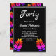 Elegant Black And White Glow Leaves 40th Birthday Invitation