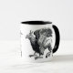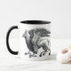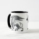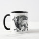 Coffee mug in an elegant image of a griffin, a mythical cross between an eagle and a lion, in black and white