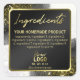 Elegant Black And White Ingredient Labels. PLEASE NOTE: No metallic foil or ink, and no glitter will be used to make these labels, they will not be reflective or shiny.