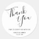 Simple black and white wedding favour stickers with "Thank You" in an elegant handwritten script and "for celebrating with us" along with your names and date in a sans serif font. The chic hand lettering adds a romantic touch to this minimalist design.