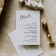 Simple Wedding Enclosure Card with "Details" in an elegant handwritten script at the top left along with your guest information in right alignment in the lower right corner. All design elements are in black and white and may be changed in the design editing tool. The chic hand lettering adds a romantic touch to this minimalist design.